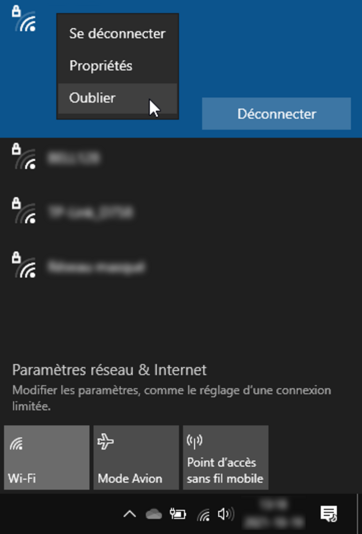 - Cliquez sur Oublier le réseau (clic droit sur Windows);